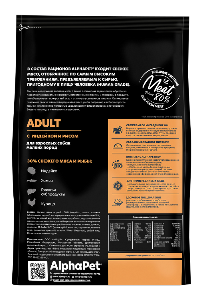Альфа Пет 51362/121102 сух.д/взрослых собак мелких пород с Индейкой и рисом 3кг