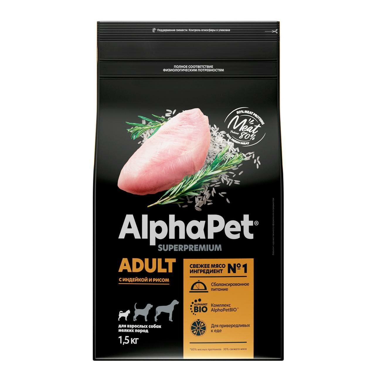 ALPHAPET SUPERPREMIUM 3 кг сухой корм для взрослых собак мелких пород с индейкой и рисом, ALPHAPET