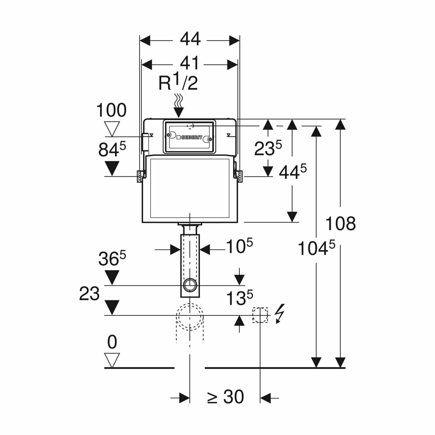 Смывной бачок скрытого монтажа Geberit UP 100 109.100.00.1 для унитазов, с отводом