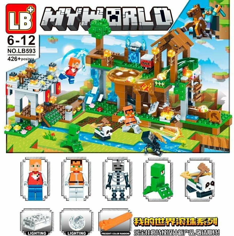Конструктор Minecraft MY WORLD LB607 "Зеленая крепость" 501 дет / Конструктор с LED подсветкой