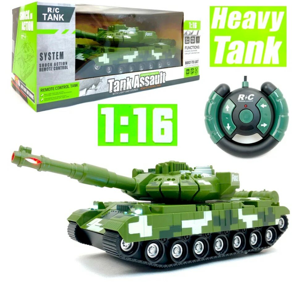 СохранитьРадиоуправляемый боевой танк Tank Assault, 1:16, движется во всех направлениях, звук стрельбы, подсветка, военная техника, танк на пульте управления интересное: