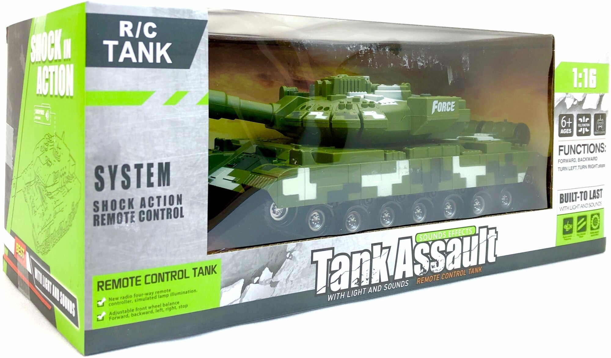 Купить Радиоуправляемый боевой танк Tank Assault, 1:16, движется во всех направлениях, звук стрельбы, подсветка, военная техника, танк на пульте управления