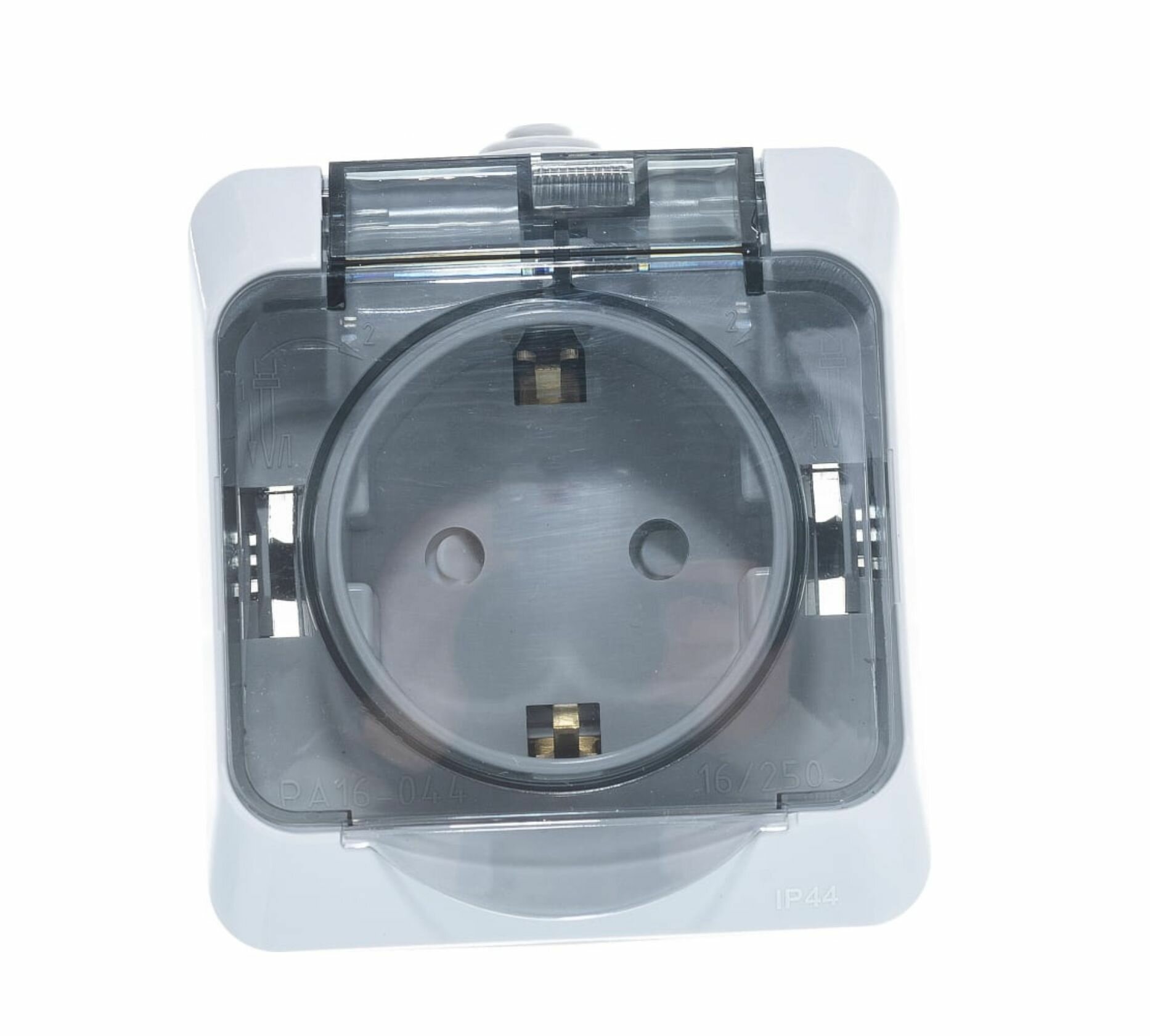 SE Этюд наруж Серая Розетка 1-ая с/з с крышкой, с защитными шторками IP44 PA16-044C