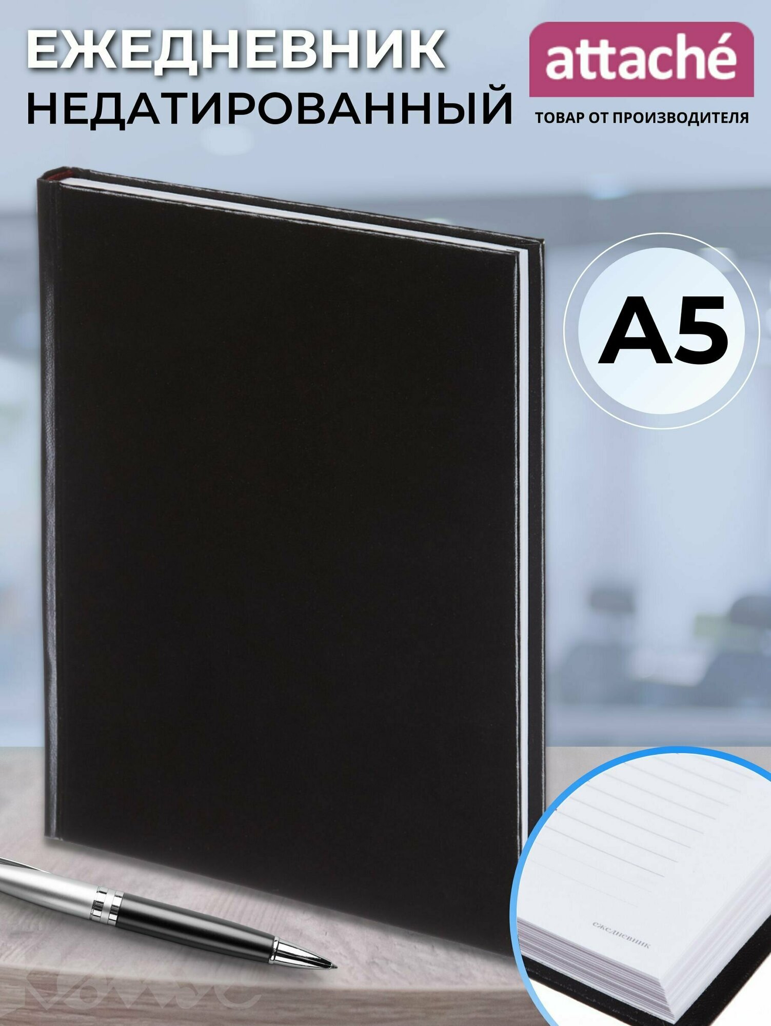 Ежедневник недатированный Attache, А5, балакрон, 136 листов, черный