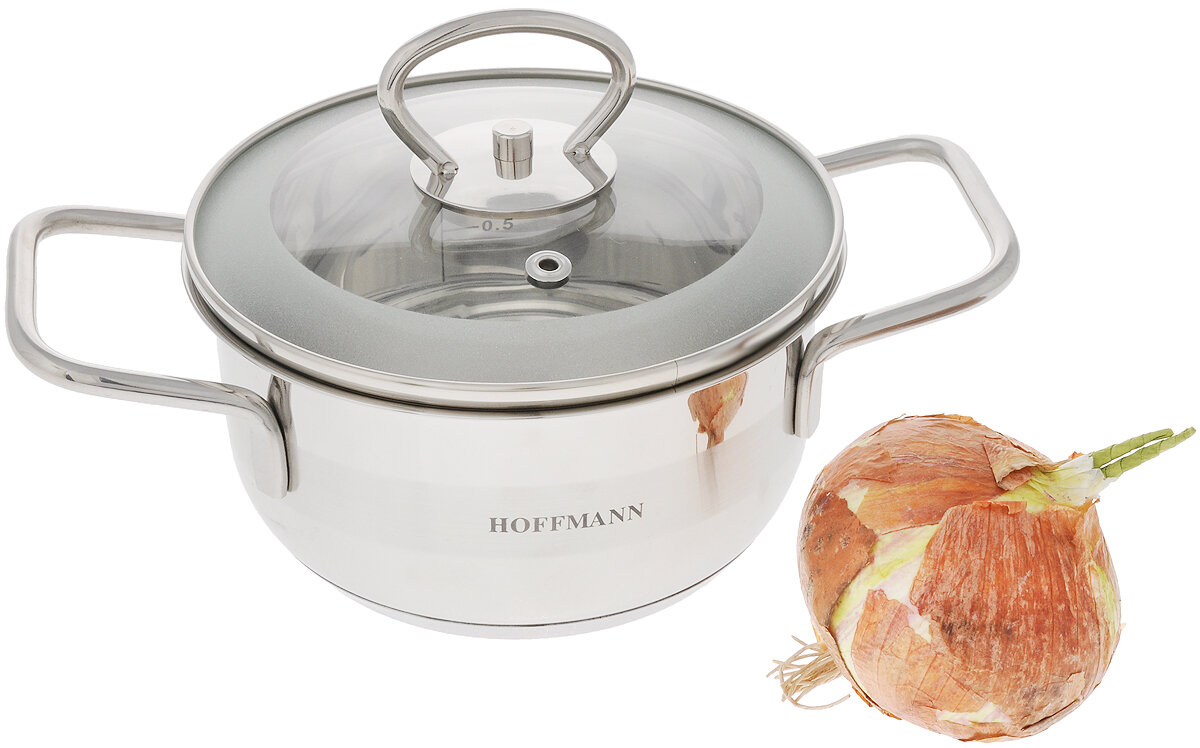 Кастрюля с крышкой, 1.6л. (16см) нерж. сталь, 3-х слойное капс. дно Hoffmann (6)