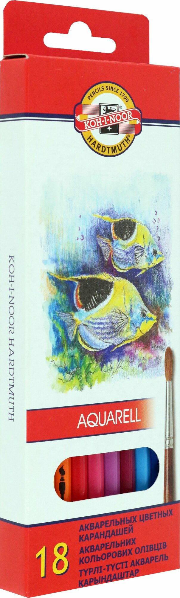 Карандаши акварельные 18 цветов Koh-I-Noor Рыбы (L=175мм, D=6.5мм, d=3мм, 6гр) картонная упаковка (3717018004KS)