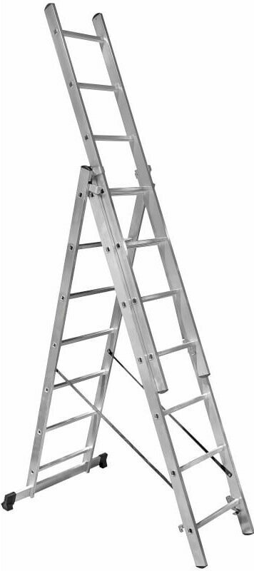 Новая высота Лестница-трансформер 3-х секционная 3×7 ступеней, 3×1,9 м, высота 4,5 м, нагрузка 150 кг, алюминий, новая высота
