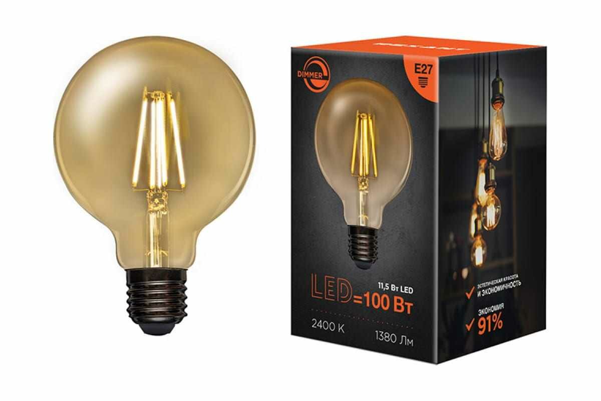 Лампа филаментная Rexant Груша A95 11.5 Вт 1380 Лм 2400K E27 димируемая золотистая колба 604-143 интересное: