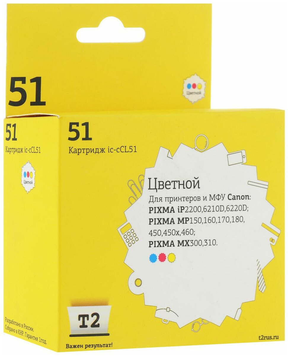 IC-CCL51 Картридж T2 для Canon PIXMA iP2200/6210D/6220D/MP150/160/170/180/450/450x/460/MX300/310, цветной