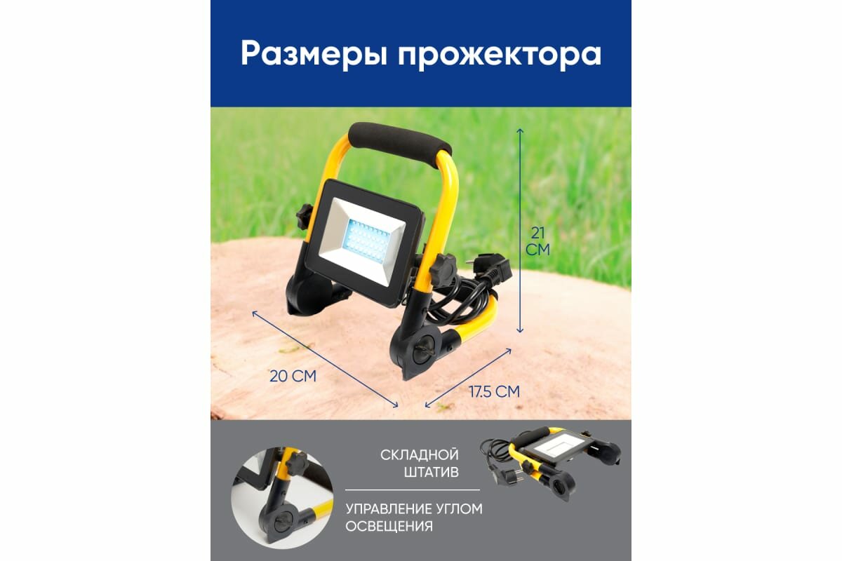 Прожектор переносной, 30W, 6400K, SMD2835, 2400Lm, IP65, LL-512