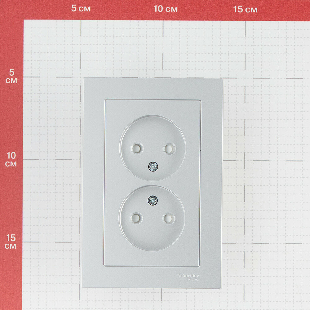 Розетка 2-м СП AtlasDesign 16А IP20 без заземл. защ. шторки в сборе алюм. SchE, SCHNEIDER ELECTRIC ATN000322 (1 шт.)