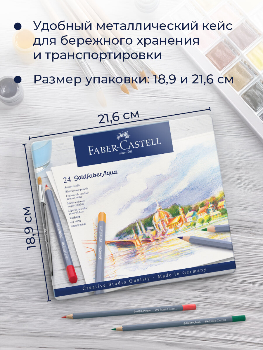 Купить Цветные карандаши акварельные художественные для рисования / Набор карандашей 24 цвета Faber-Castell "Goldfaber Aqua" / профессиональные для художников, для творчества и скетчинга