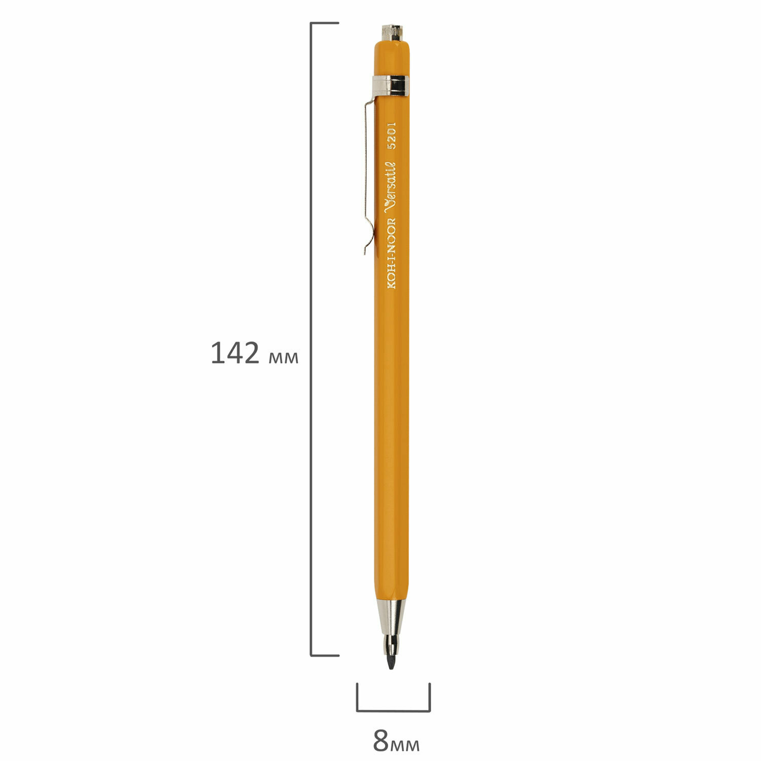 Карандаш механический KOH-I-NOOR 1 штука, корпус желтый, 2 мм, цанговый с клипом и точилкой (5201CN1004BL)