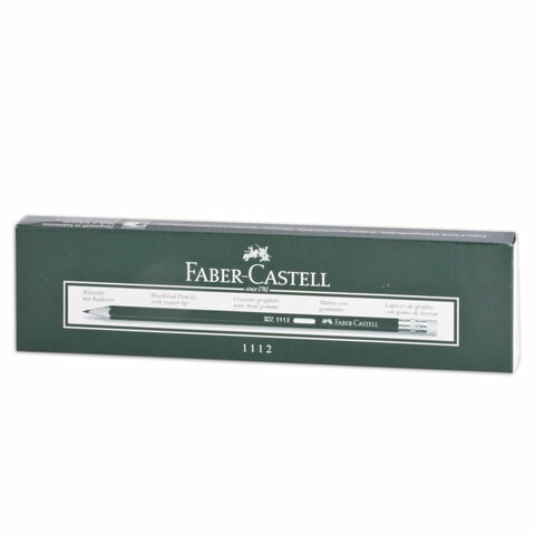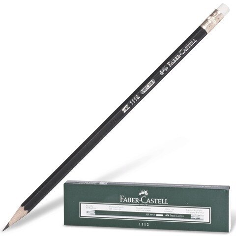 Карандаш чернографитный FABER-CASTELL, 1 шт., "1112", НВ, с ластиком, корпус черный, 111200