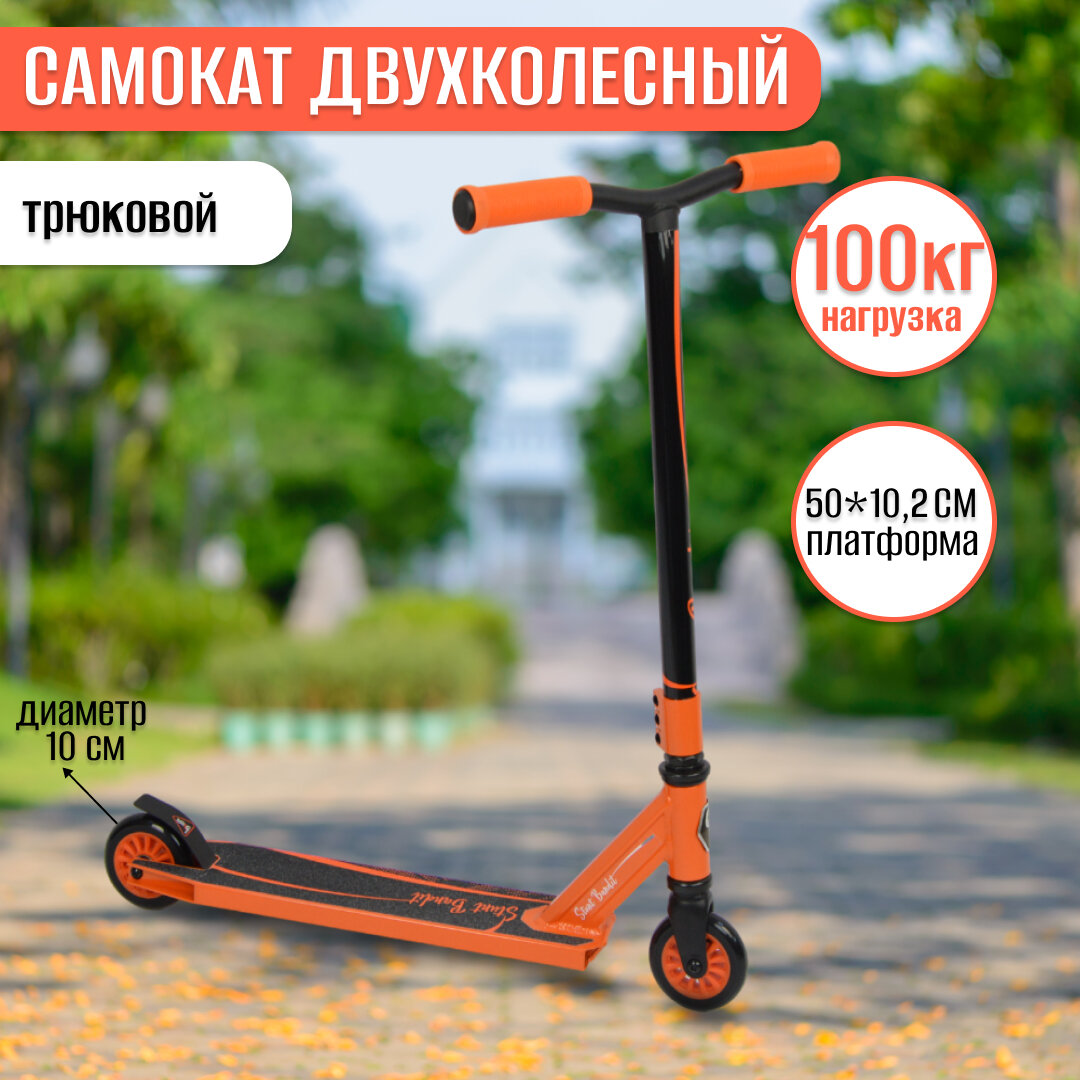 Самокат двухколесный трюковой "Slider" оранжевый интересное: