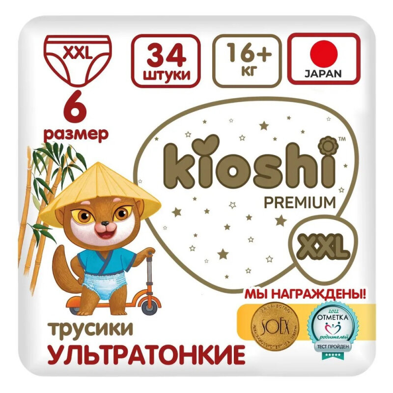 KIOSHI Подгузники-трусики KIOSHI PREMIUM , Ультратонкие, XXL 16+ кг, 34 шт