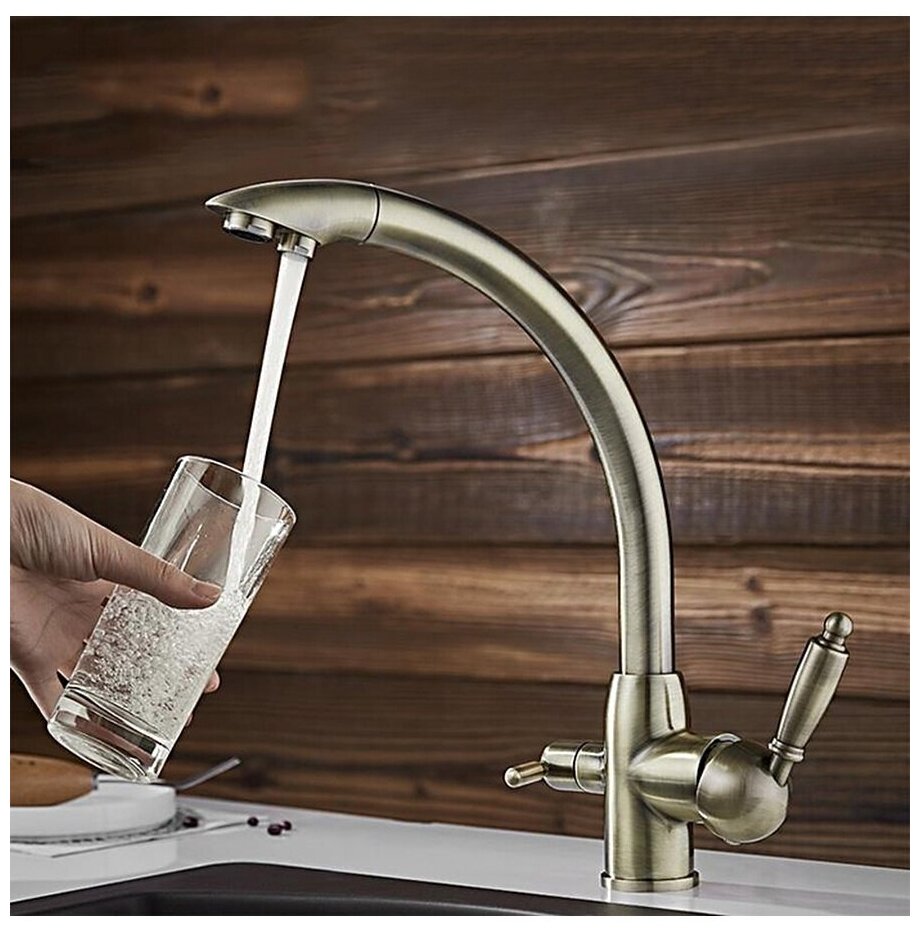 Смеситель для кухни со встроенным краном под фильтр питьевой воды Ledeme L4455C-3 бронзовый
