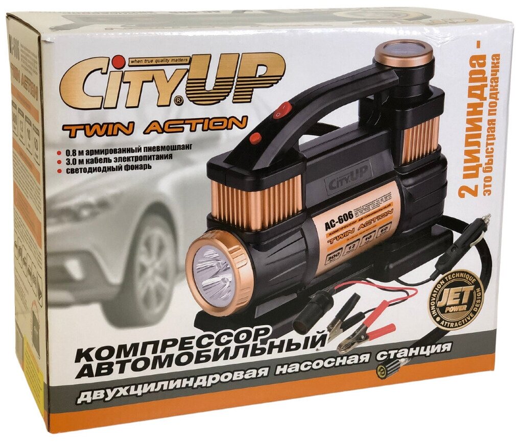 Ниже Вы можете прочитать отзывы на Автомобильный компрессор CityUP AC-606 Twin Action, 60л/мин. Двухпоршневой, 300Вт, ознакомится с подробными характеристиками, посмотреть интересные обзоры и фотографии на Автомобильный компрессор CityUP AC-606 Twin Action, 60л/мин. Двухпоршневой, 300Вт.