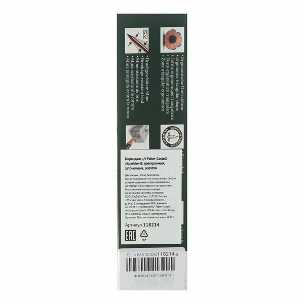 FABER-CASTELL Карандаш чернографитный Faber-Castell Sparkle pearl gold B, трёхгранный, с массажными шашечками, золотой, в картонной коробке