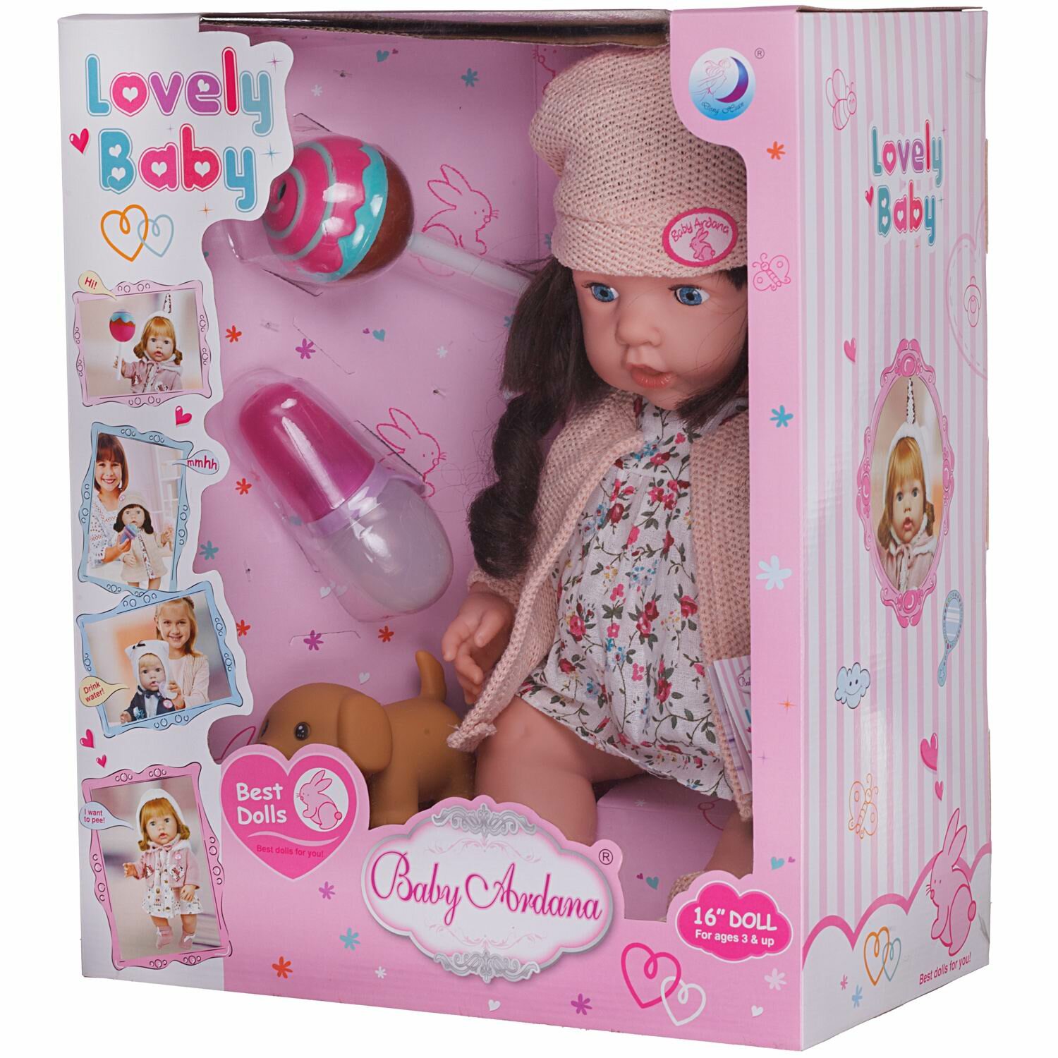 Пупс-кукла "Baby Ardana", 40см, в платье и вязаном пальто, в наборе с аксессуарами, в коробке