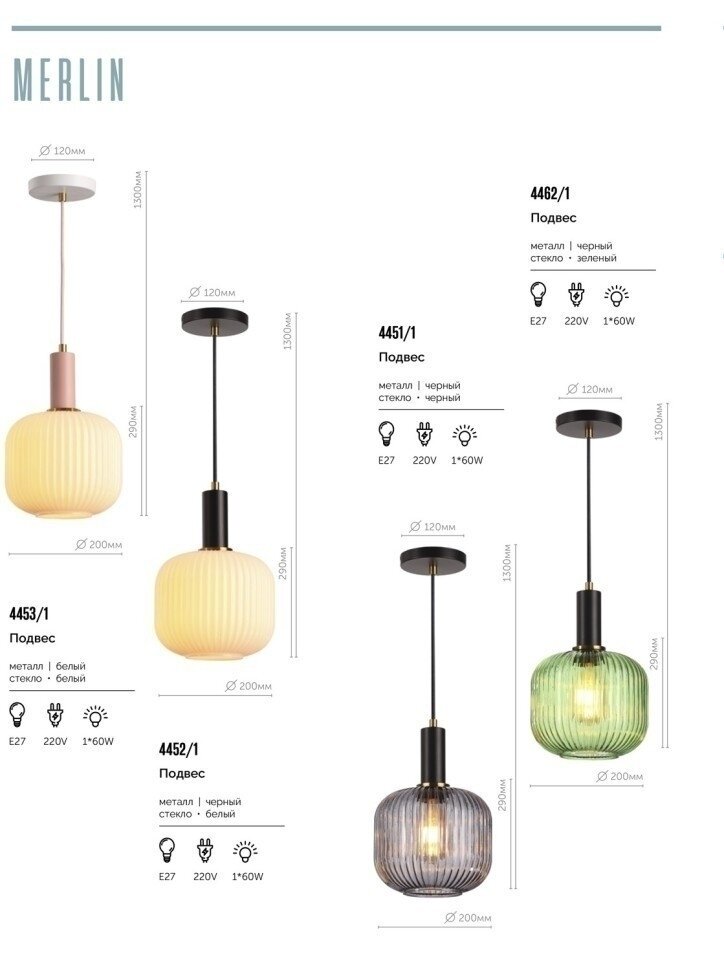 СохранитьПодвес черный, зеленый 4462/1 E27 1*60W 220V MERLIN интересное: