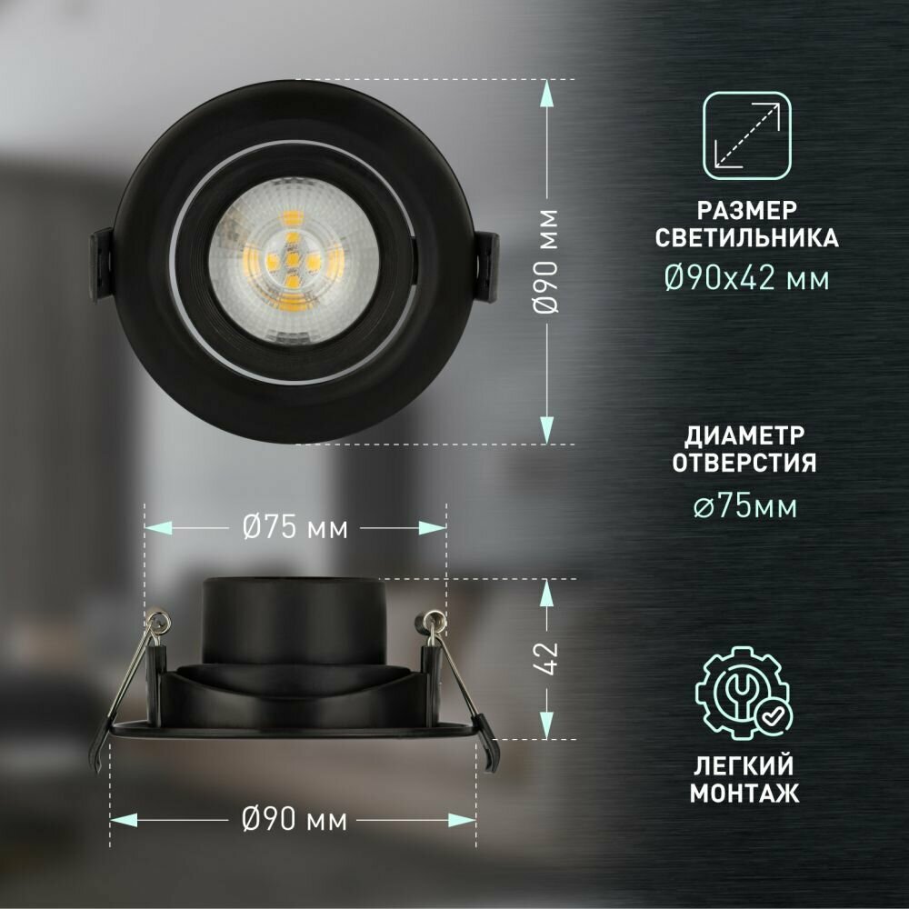 Светильник светодиодный 5Вт KL LED 22A-5 4000K 400Лм D90мм встраиваемый поворотный черный 230В IP20 Б0039687 ЭРА