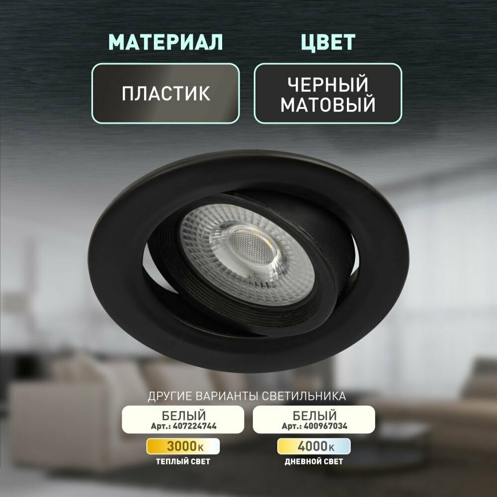 Светильник ЭРА Светильник ЭРА светодиодный круглый поворотн. LED SMD 5W 4000K, черный KL LED 22A-5 4K BK арт. Б0039687 (1 шт.)