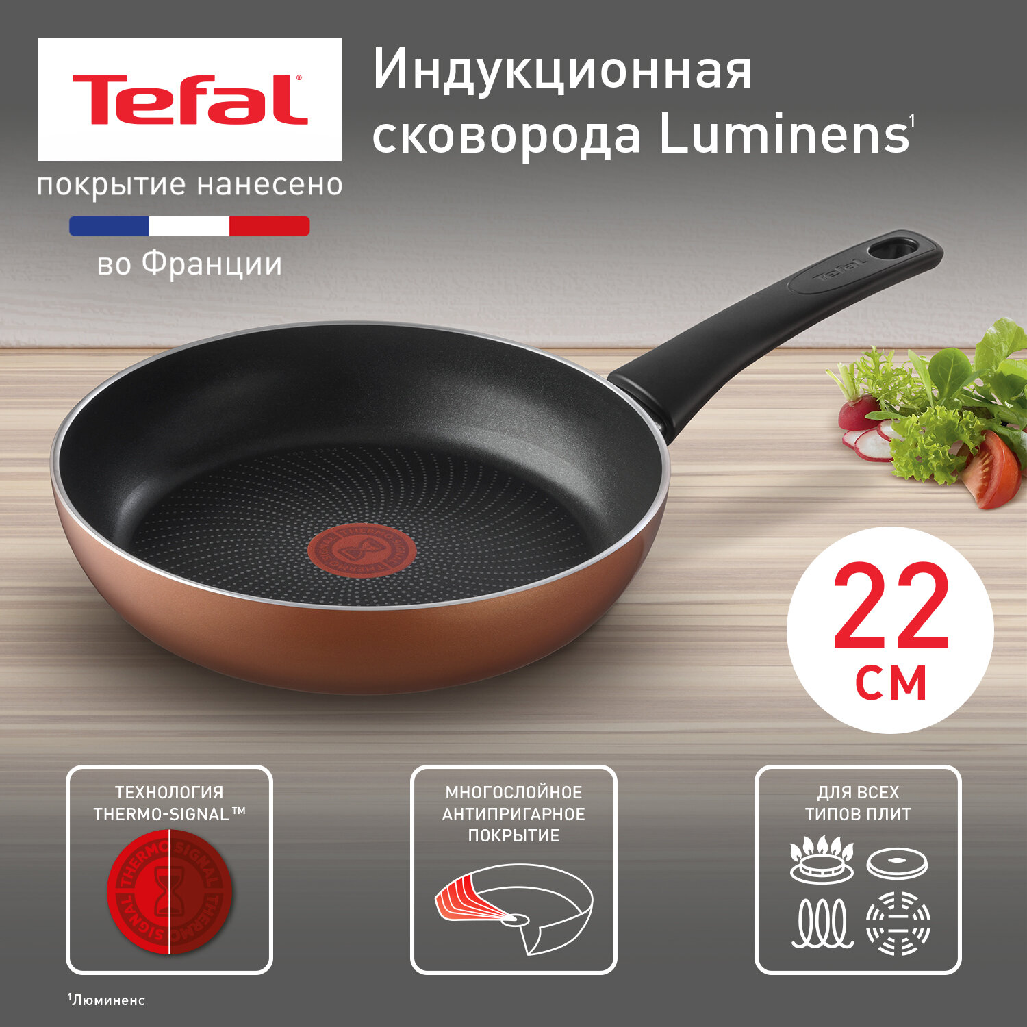 Купить Сковорода Tefal Luminens 04229122, диаметр 22 см, с индикатором температуры, глубокая, с антипригарным покрытием, для газовых, электрических и индукционных плит