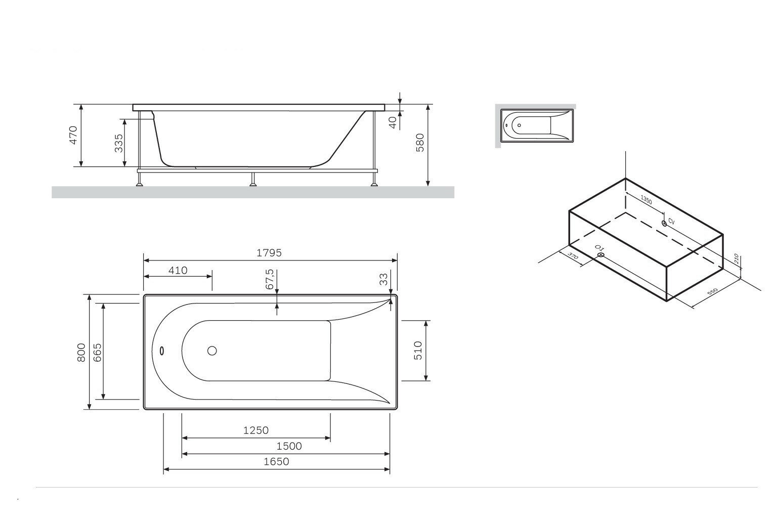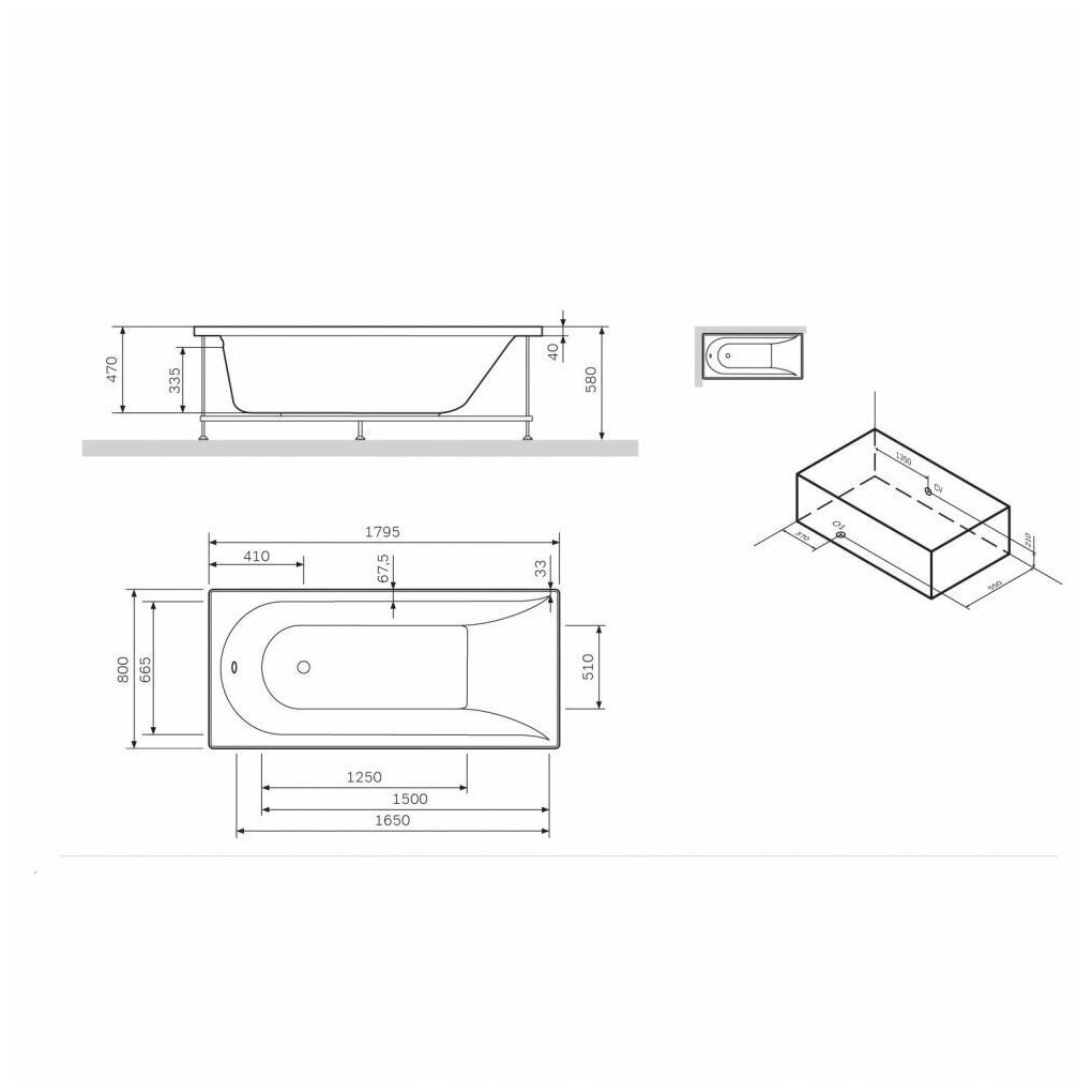 Для ванны Am.Pm W72A-180-080W-P2 панель фронтальная для ванны Spirit 180х80см