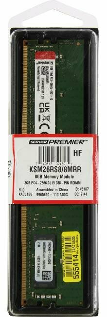 Модуль памяти Kingston 8GB 1Rx8 1G x 72-Bit PC4-2666 CL19 Registered w/Parity 288-Pin Dimm ECC Ksm26 .