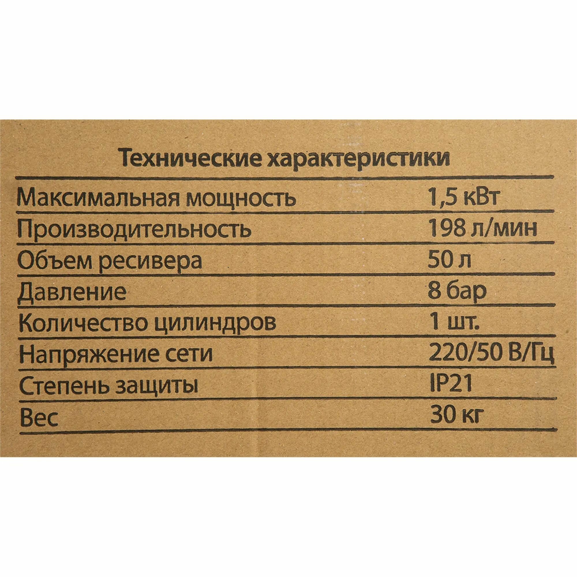 Компрессор поршневой KRONWERK KD 50/200 58043, 1,5 кВт, 198 л/мин, 50 л