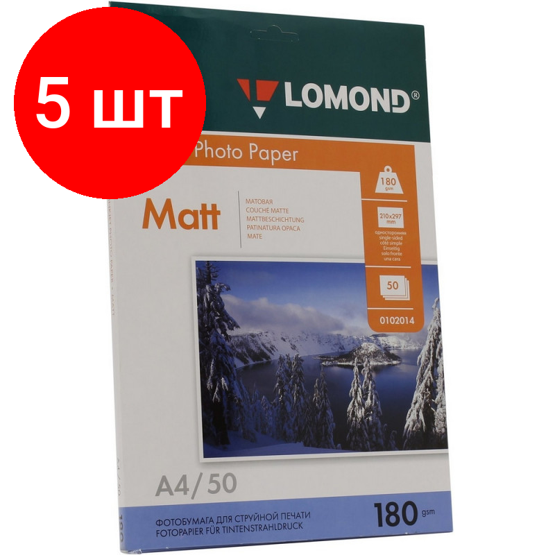 Купить Комплект 5 штук, Фотобумага LOMOND односторонняя матовая 180г A4 50л 0102014
