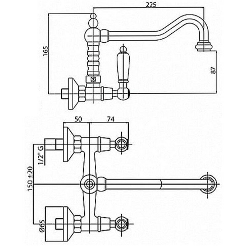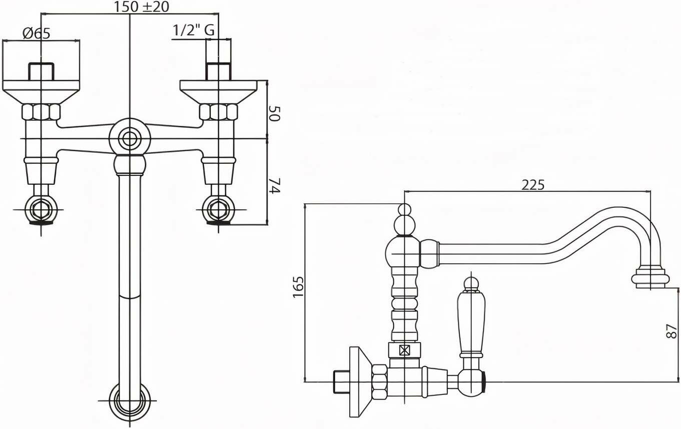 Смеситель кухонный настенного монтажа CEZARES FIRST-LLP-03/24-Bi