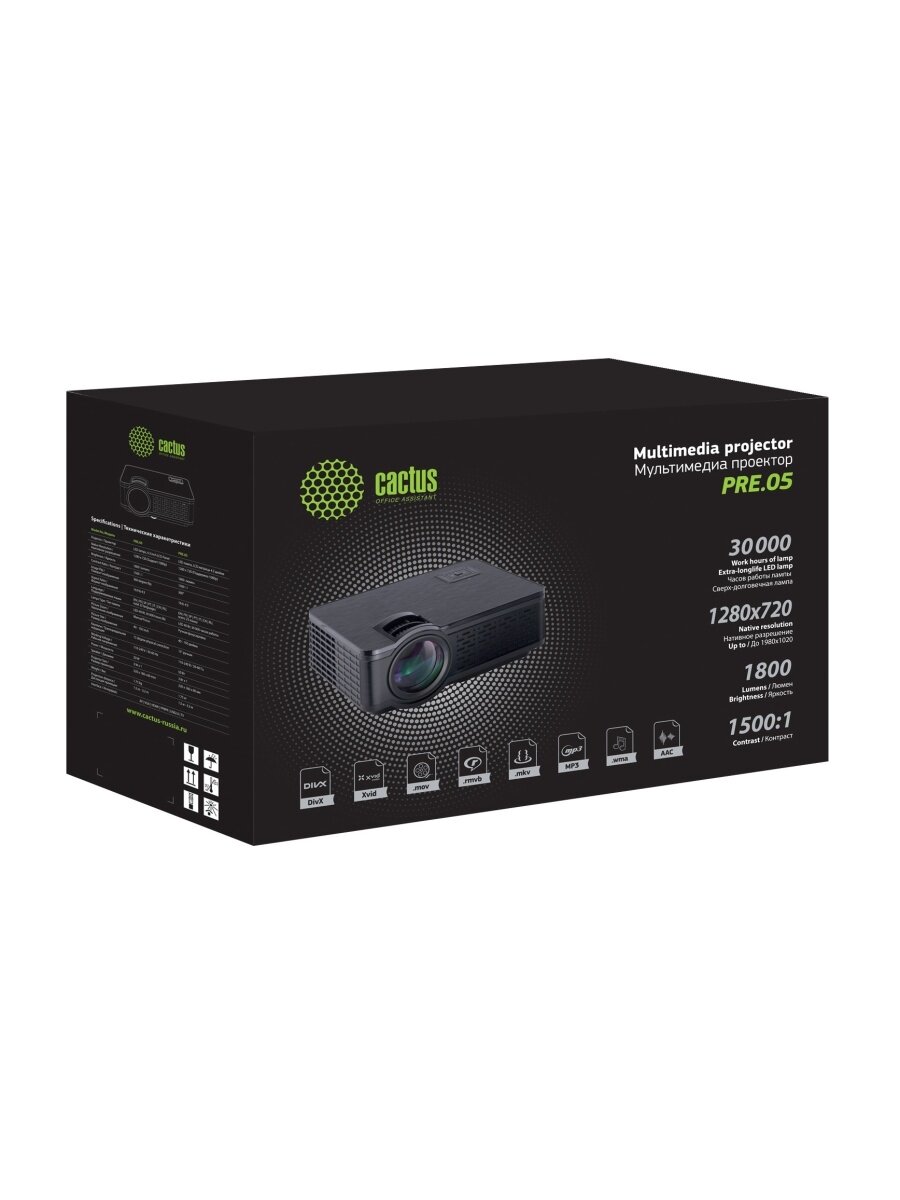 Мультимедийный проектор Cactus CS-PRE.05B. WXGA-W, черный интересное:
