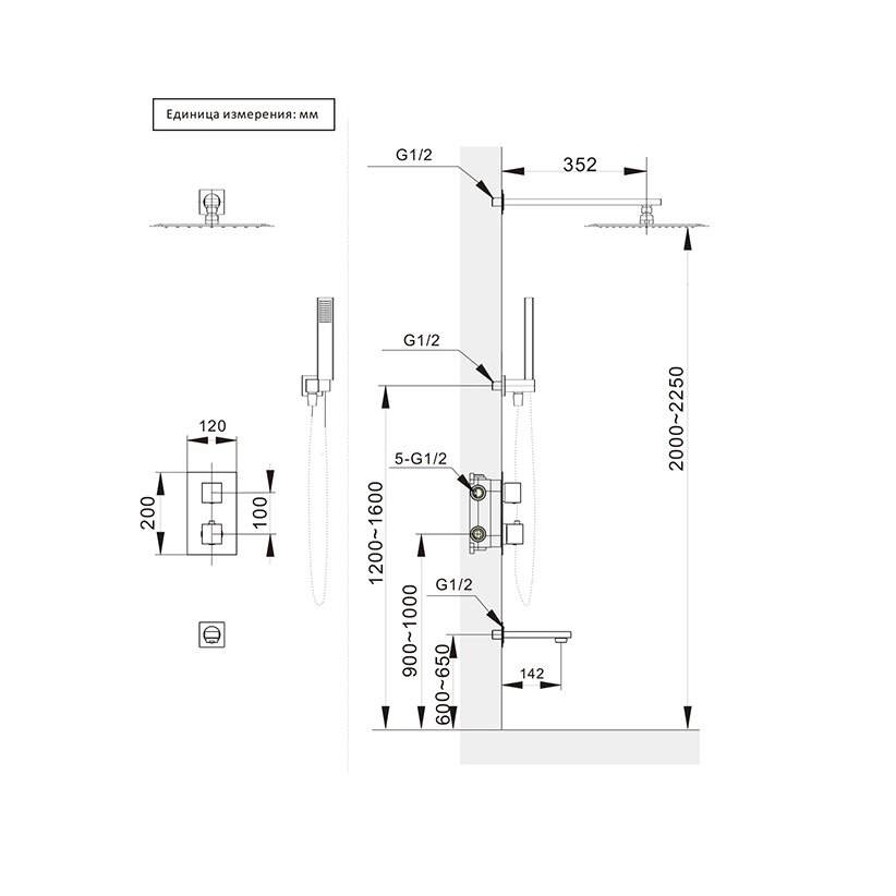 | Форма верхнего душа | квадратная |