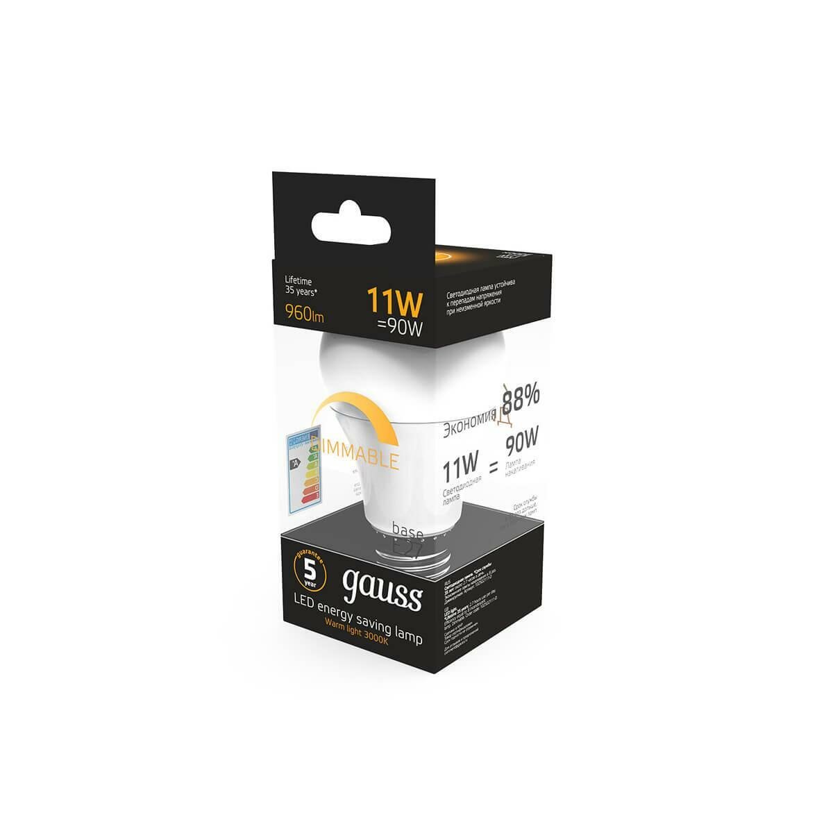 Купить Gauss Лампа LED A60-dim E27 11W 960lm 3000К 102502111-D