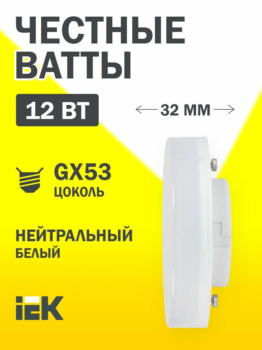 (12 шт.) Светодиодная лампочка IEK 12Вт 230В 4000К GX53