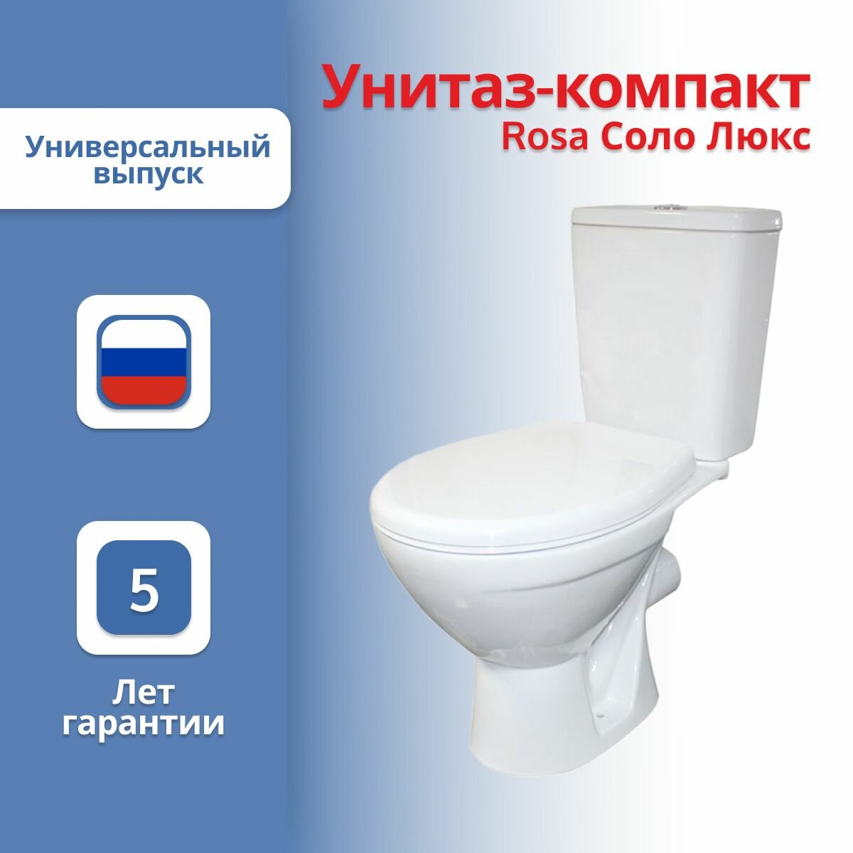 Купить Унитаз компакт Rosa Соло Люкс 4640021062142 Белый с бачком и сиденьем Микролифт