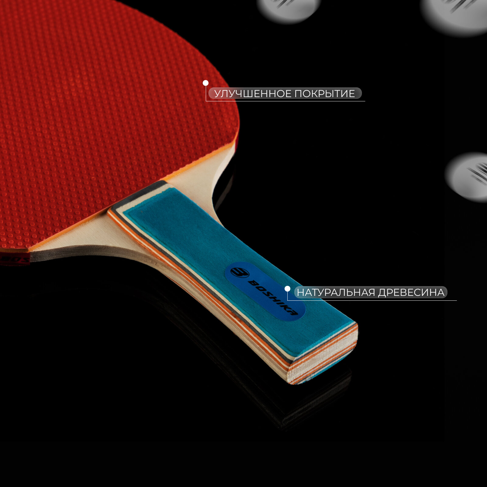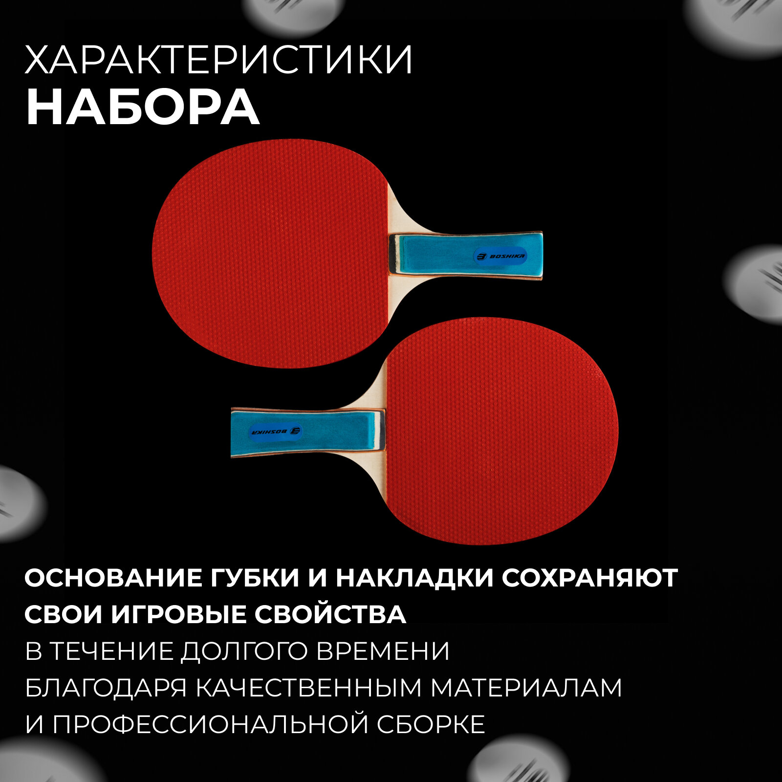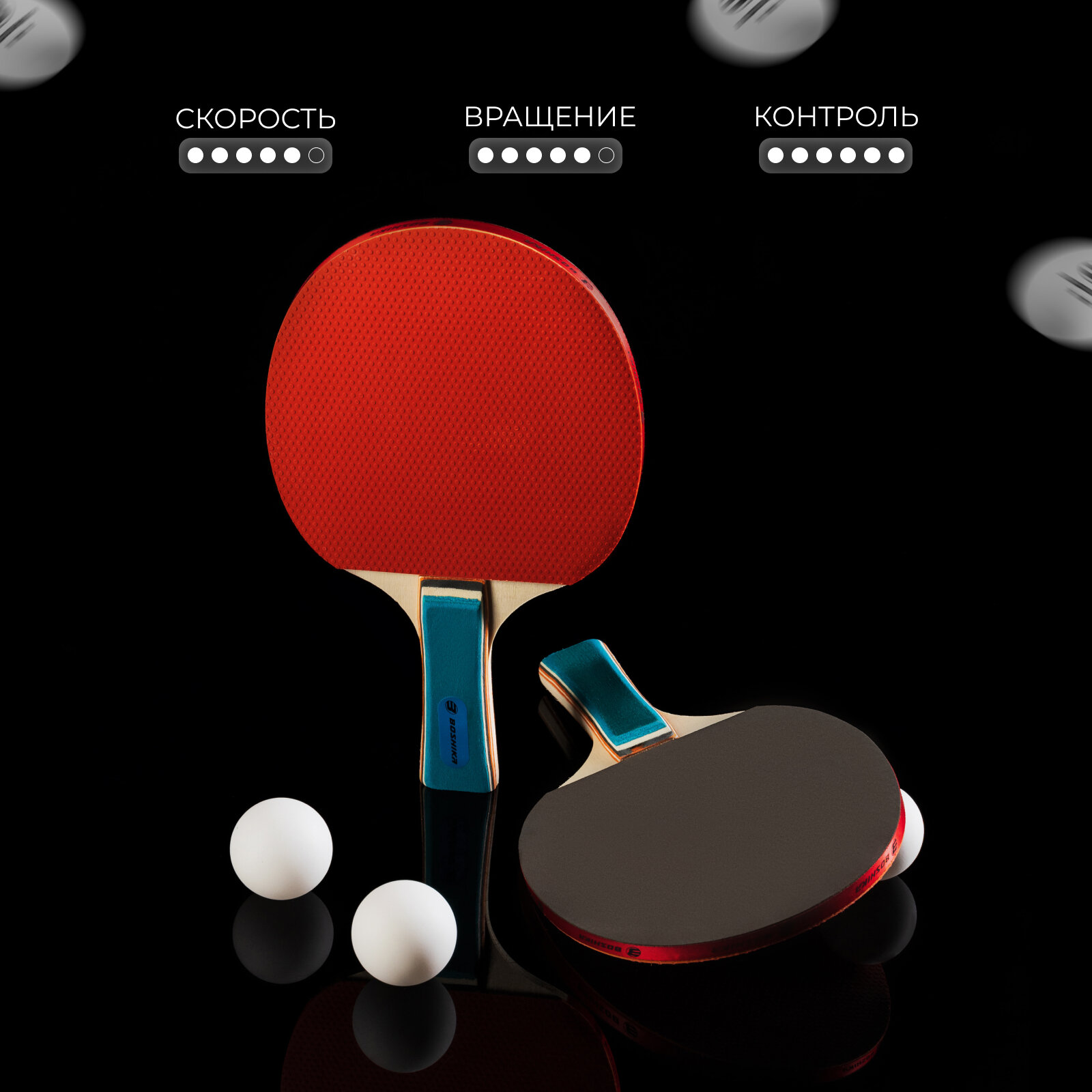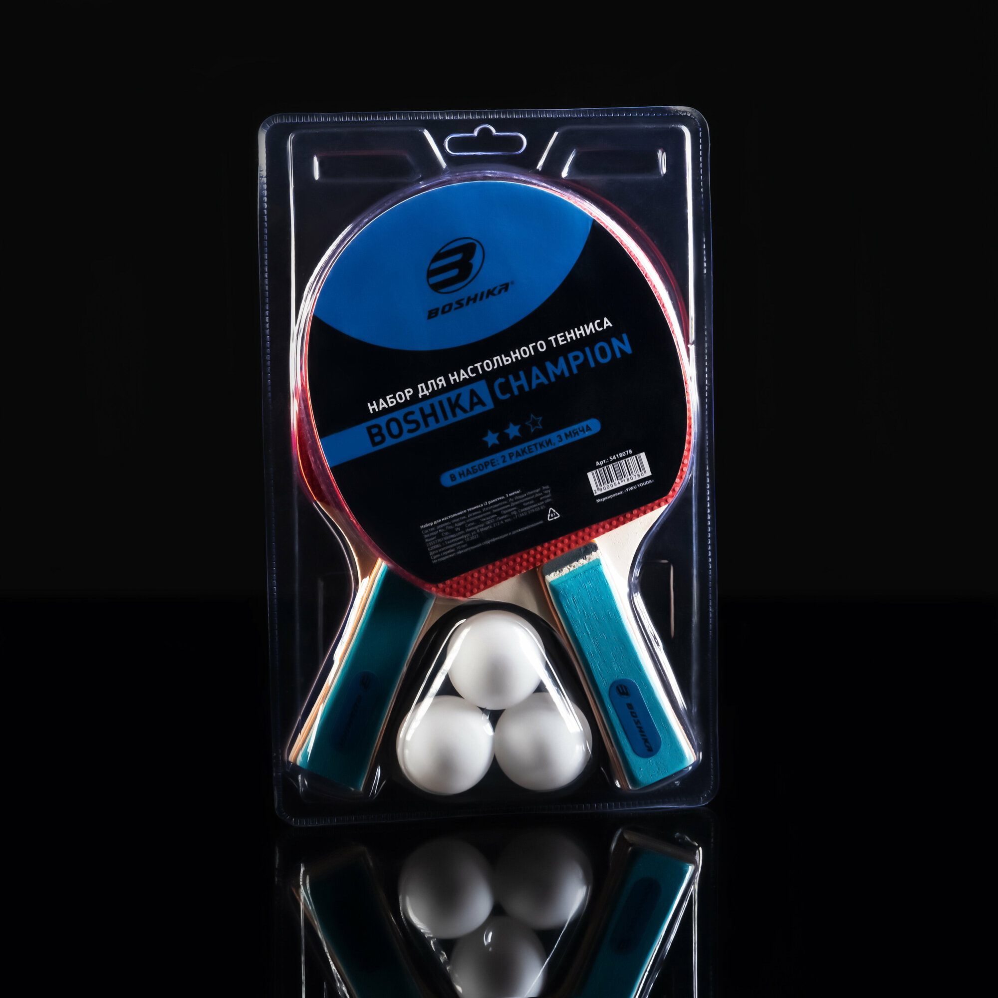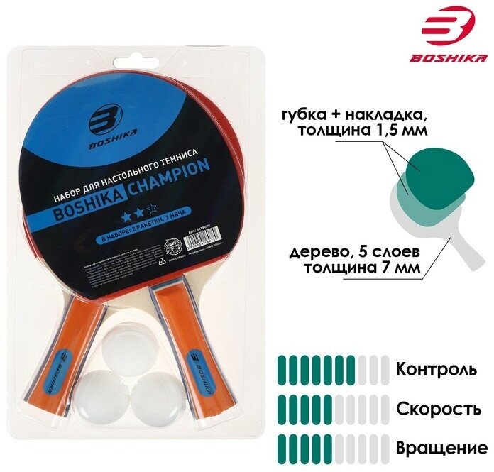 Набор для настольного тенниса BOSHIKA Championship: 2 ракетки, 3 мяча