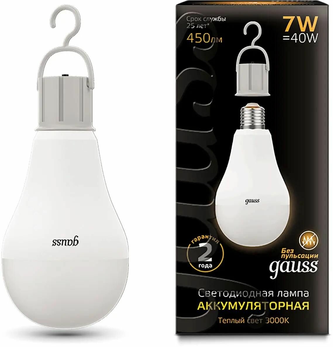 Gauss Лампа LED A60 7W E27 450lm 3000K с Li-Ion аккумулятором 102402107