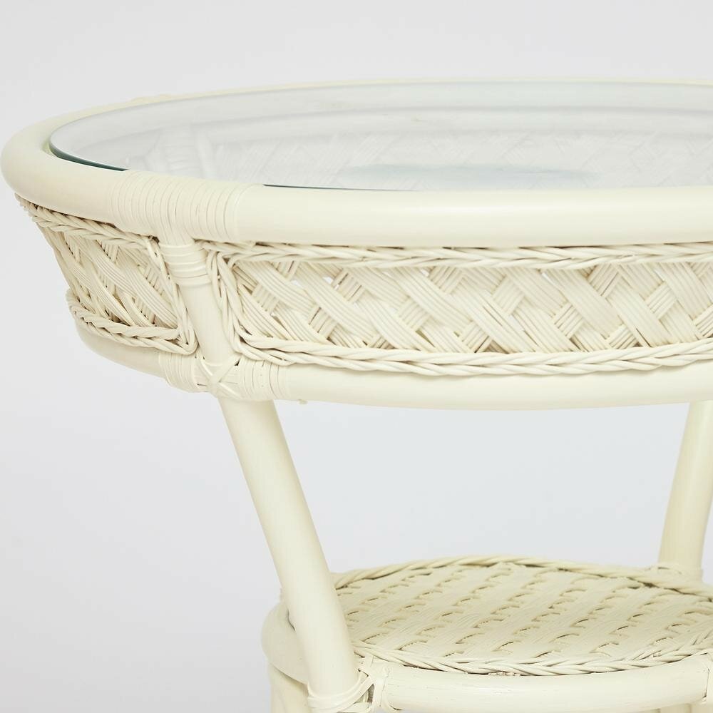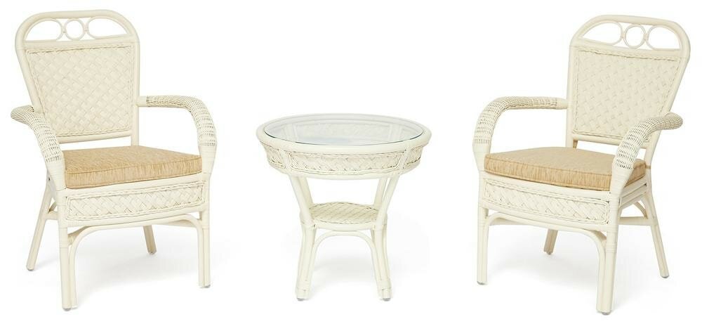 Купить Комплект террасный ANDREA (стол кофейный со стеклом + 2 кресла + подушки)ротанг, 64х67х92см / D60х55, TCH White (белый)