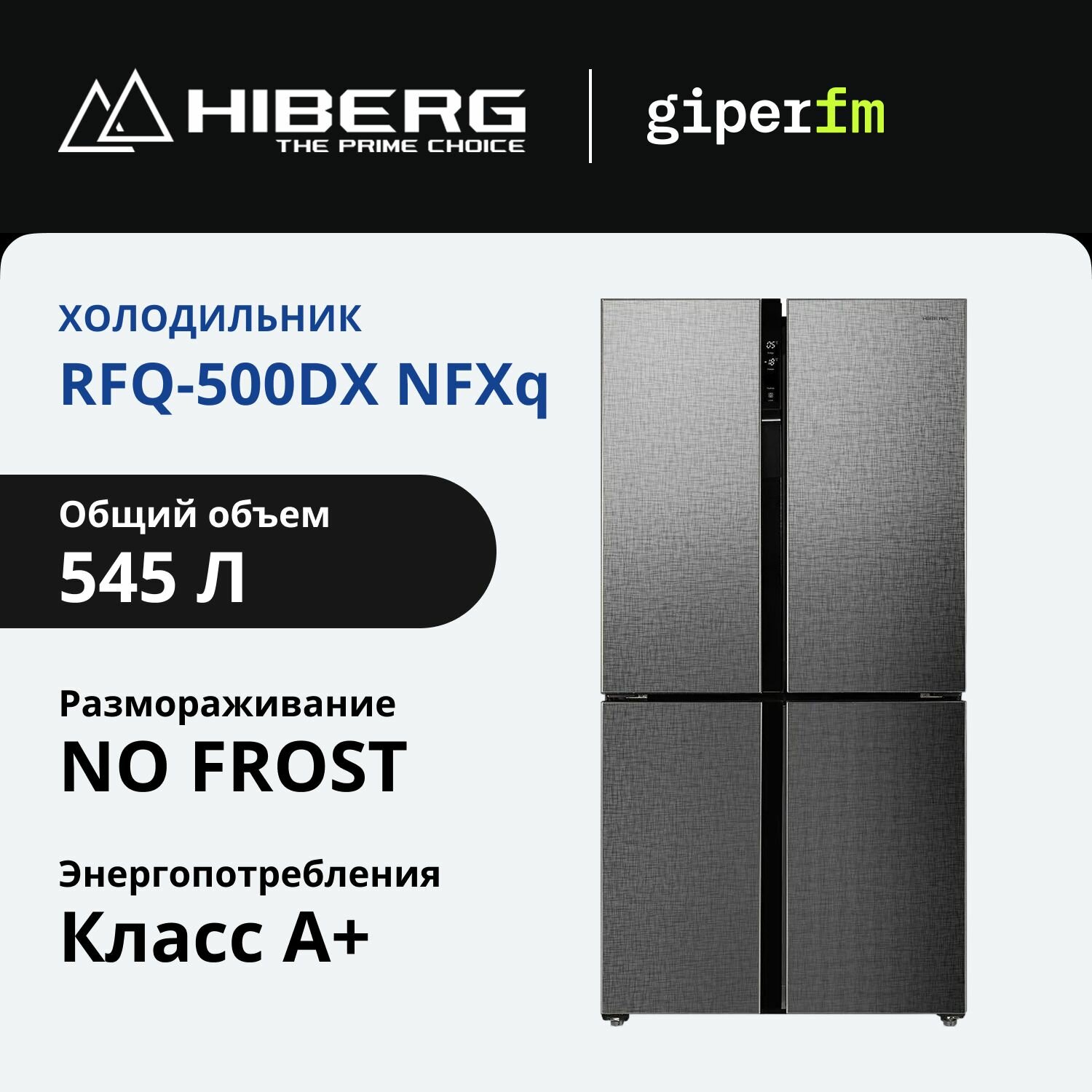 Холодильник HIBERG RFQ-500DX NFXd, 545 л, Invertor motor, Metal Cooling, Total NO FROST, Multi Air Flow система охлаждения