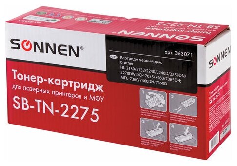 Картридж лазерный SONNEN SB-TN2275 для BROTHER HL-2240R/2240DR/2250DNR, ресурс 2600 страниц, 363071