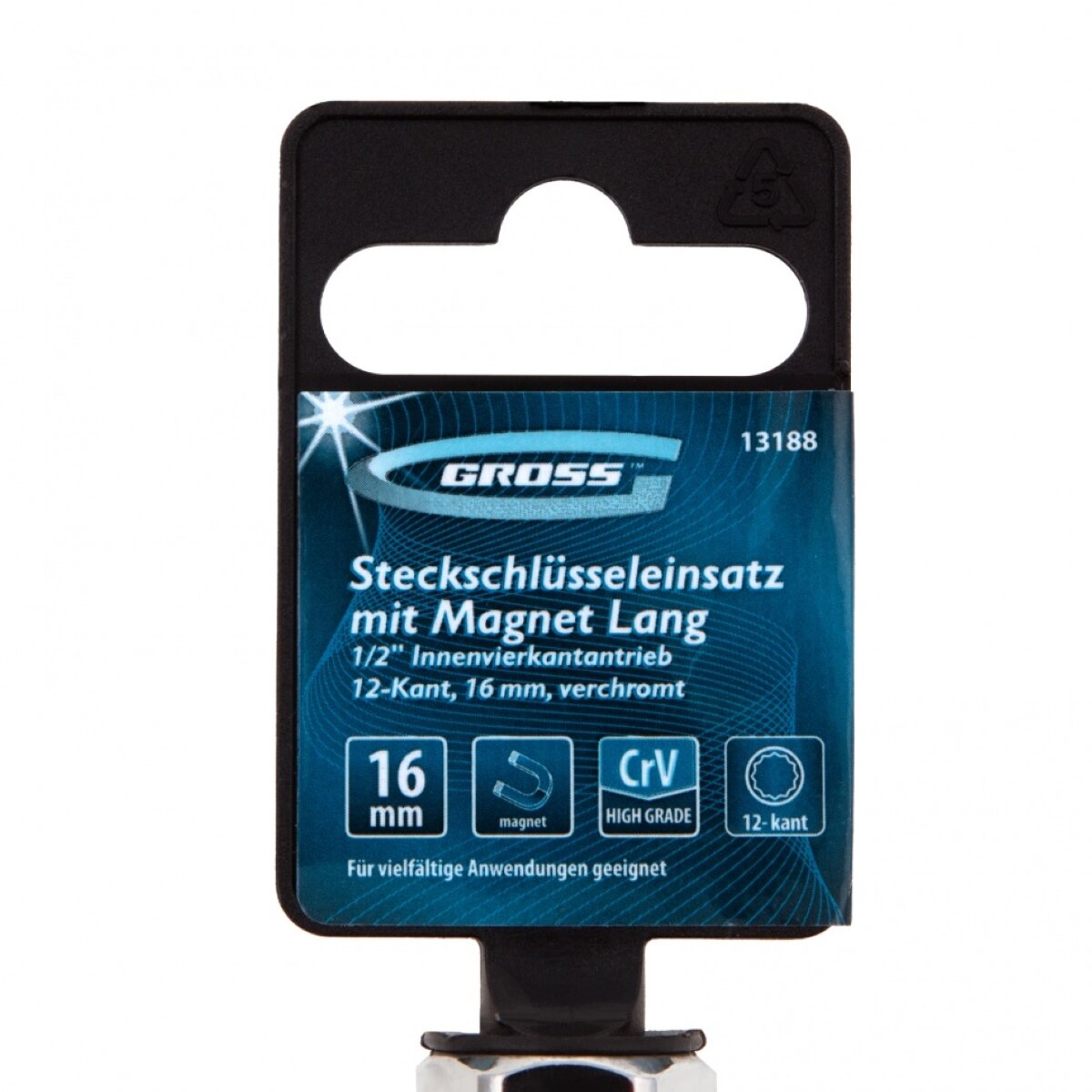 GROSS Головка торцевая свечная, магнитная, двенадцатигранная, 16 мм, под квадрат 1/2 Gross, ( 13188 )