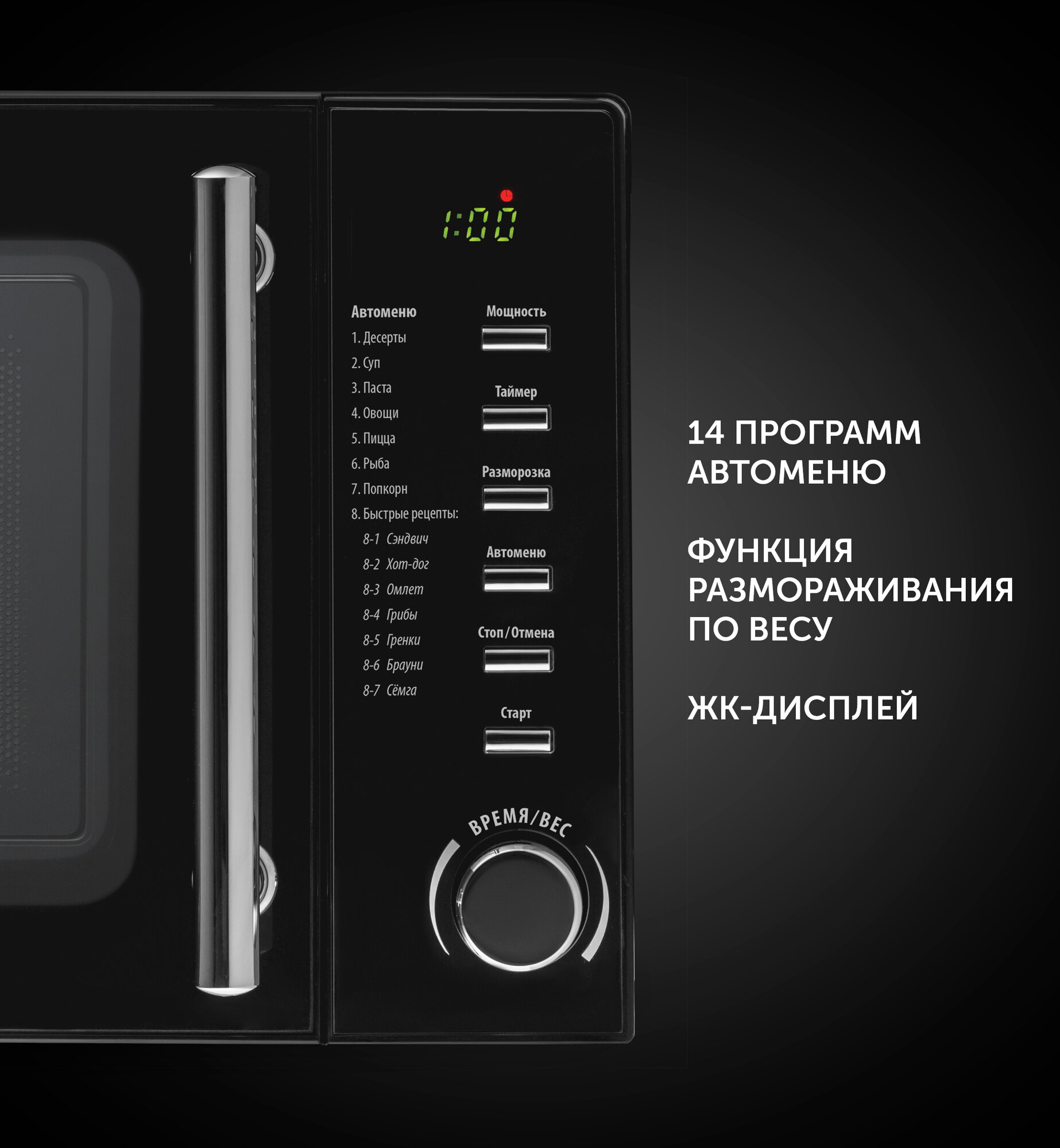| Дополнительные режимы | автоматическая разморозка / автоматический разогрев / автоматическое приготовление |