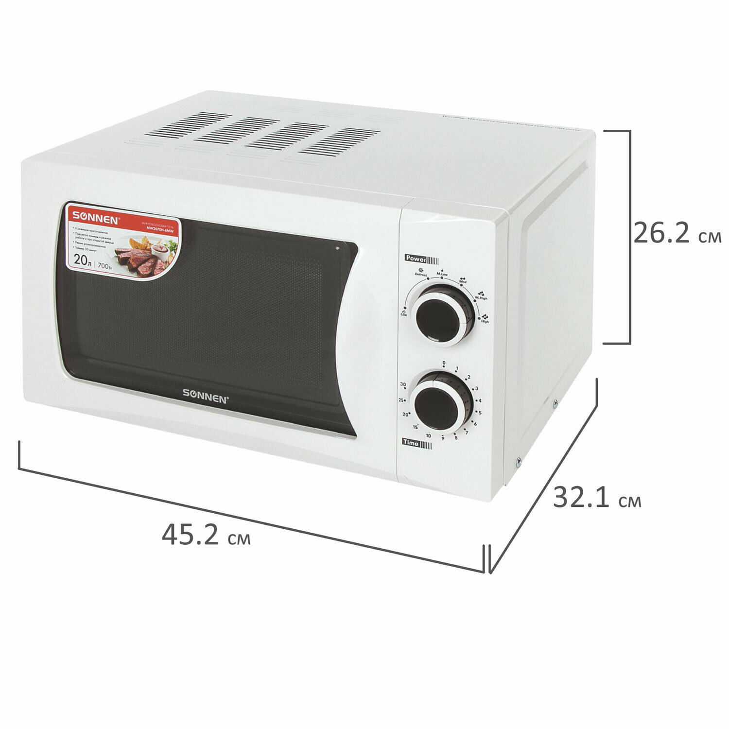 Микроволновая печь SONNEN MW2070H-6MW, 20 л, 700 Вт, таймер, механическое управление, белая, 454652