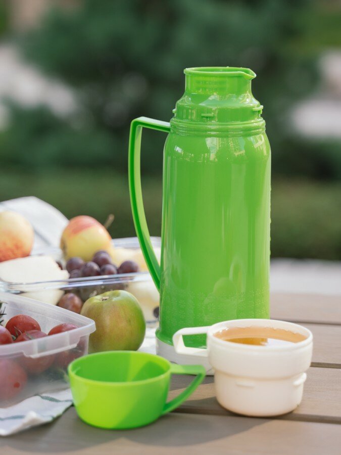 Термос Венеция стекл.колба/пластик, узкое горло, 0,6л, чашки 2шт, зеленый, арт.60029 Master House
