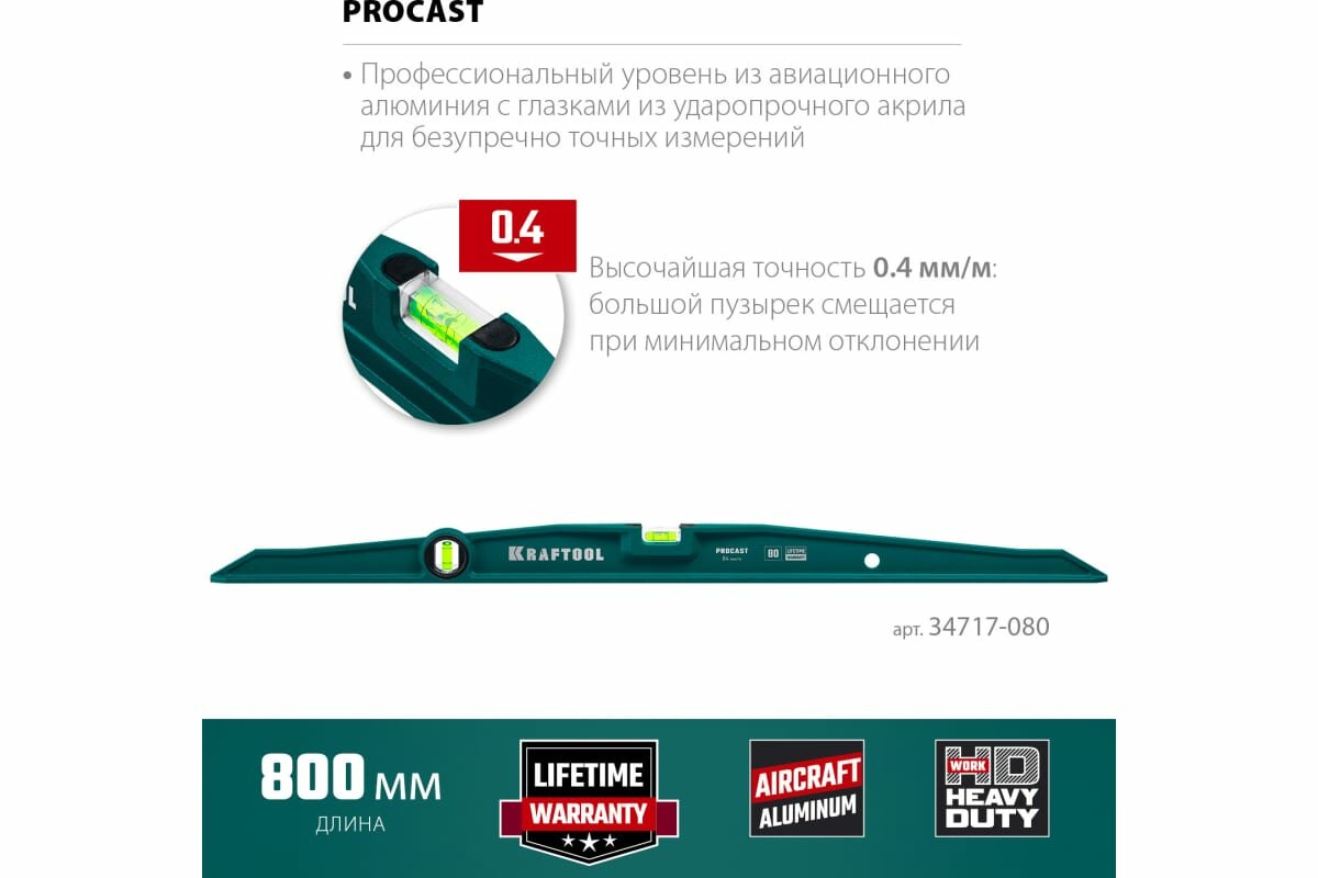 Литой уровень KRAFTOOL Procast 800 мм (34717-080)