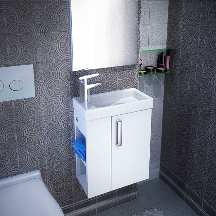 Тумба с раковиной для ванной Кристалл 50 белая.