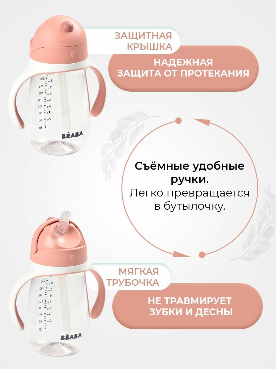 BEABA поильник с трубочкой детский, бутылочка для воды 300 мл, поильник непроливайка для ребенка